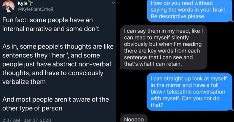 Weird Guy Discovers Some People Don’t Hear Their Thoughts, And Twitter Is Weighing In ByAimeé February 4, 2020