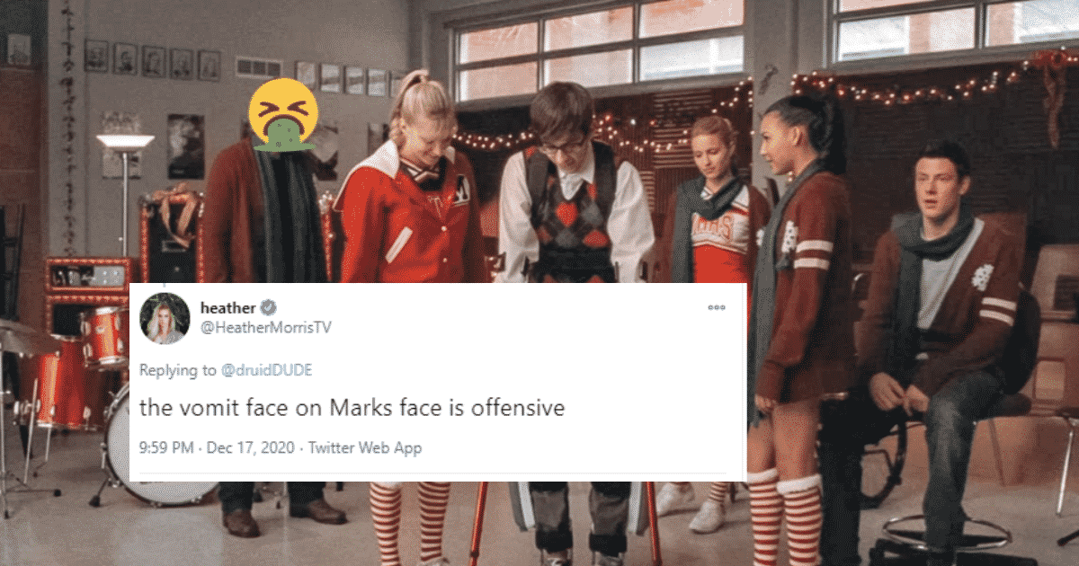 When Glee castmate Kevin McHale quote tweeted a fan’s ode to “A Very Glee Christmas,” his costar Morris took offense with the vomiting emoji the user put over Salling’s face.