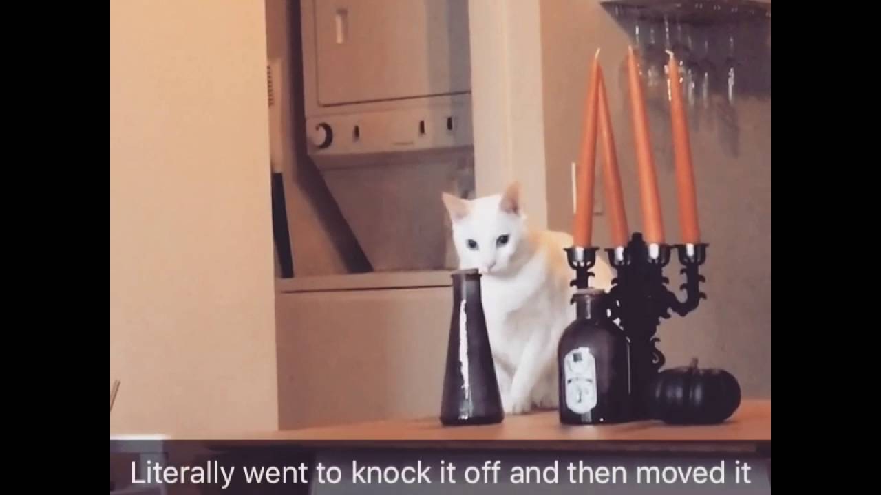 Knocking over expensive things just to be the tiny little bastard that it likes to be.