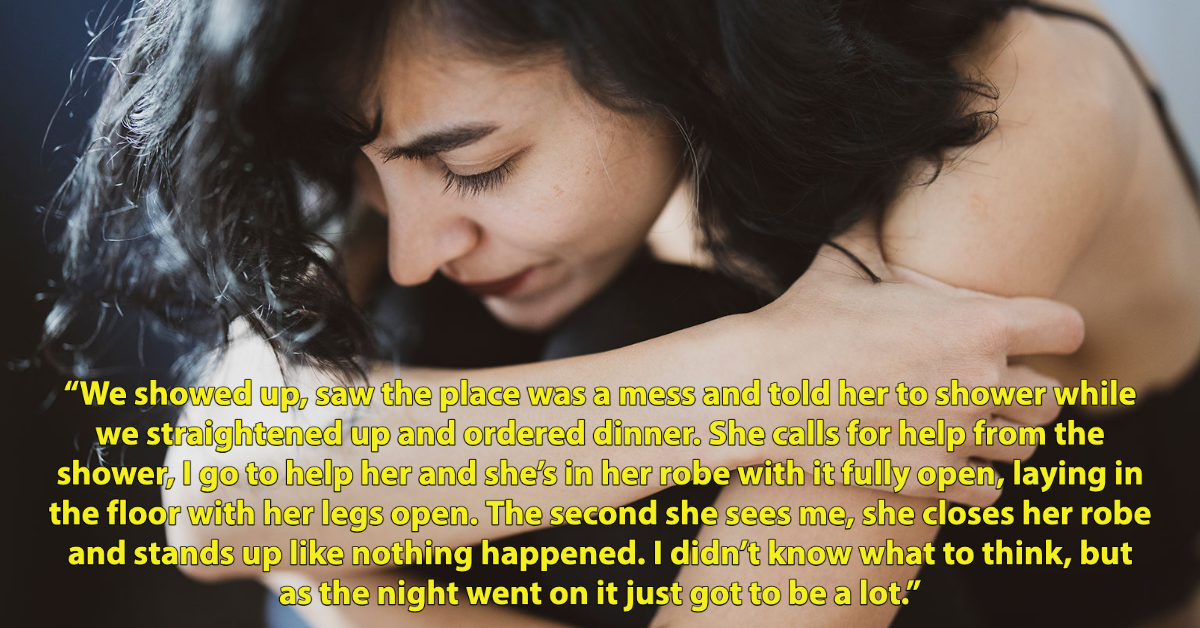 “She called me a few days ago begging us to come over. Apparently Connor had dumped her and she was having a mental breakdown in their apartment. We showed up, saw the place was a mess and told her to shower while we straightened up and ordered dinner. She calls for help from the shower, I go to help her and she’s in her robe with it fully open, laying on the floor with her legs open. The second she sees me, she closes her robe and stands up like nothing happened. I didn’t know what to think, but as the night went on it just got to be a lot. She wouldn’t get dressed out of her robe and kept ‘almost’ exposing herself.”