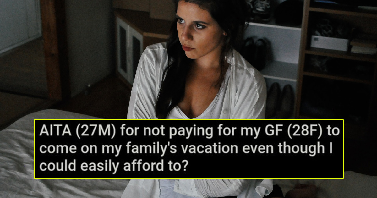 Posted by u/Dontheman25, the OP asked, “AITA (27M) for not paying for my GF (28F) to come on my family’s vacation even though I could easily afford to?”