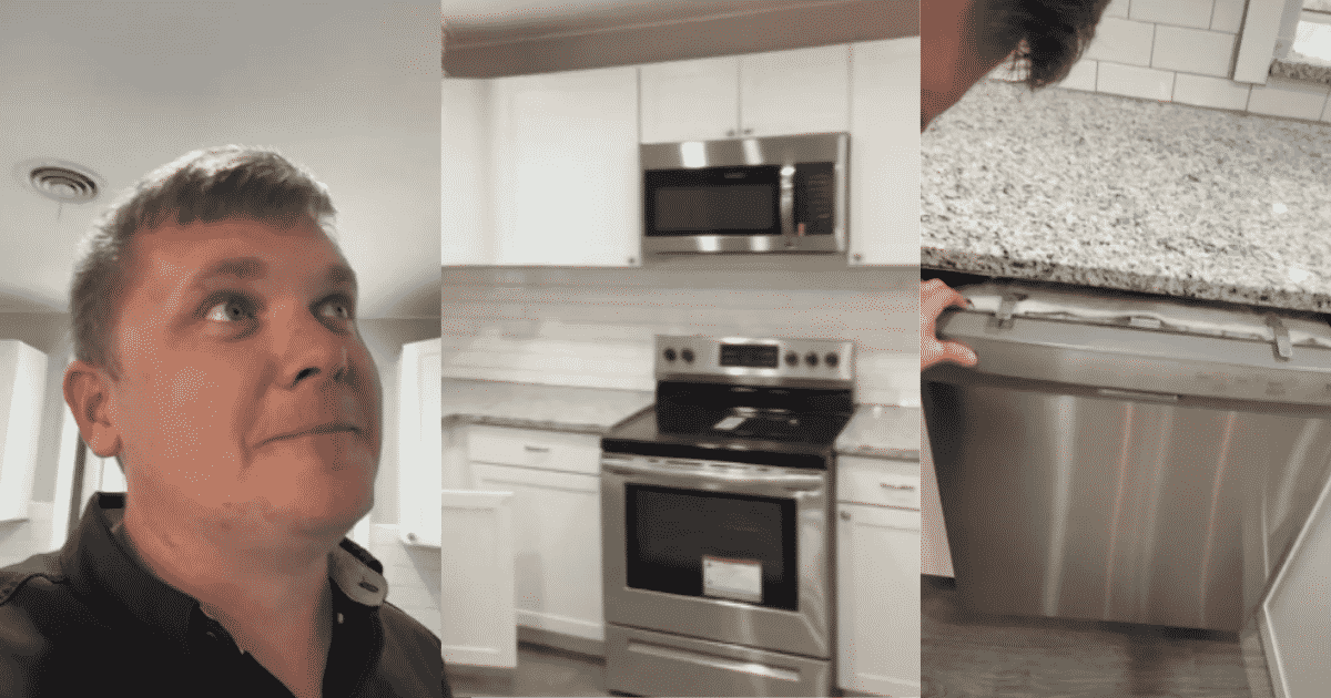 “If this isn’t every flipped house, then I don’t know what it is. Look at that kitchen,” he said in the video. “The gray kind weathered kind of vinyl flooring, white subway tile. … Just the most basic granite or quartz, whatever the heck countertops those are. And dishwasher. … Not installed.”