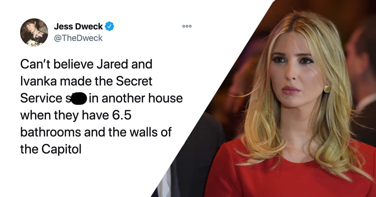 Here’s how people reacted to the news that Jared Kushner and Ivanka Trump won’t let the Secret Service use their bathrooms: