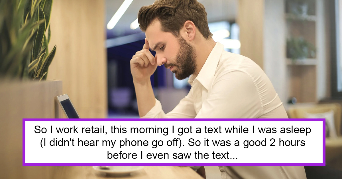 So I work retail, this morning I got a text while I was asleep (I didn’t hear my phone go off). So it was a good 2 hours before I even saw the text.