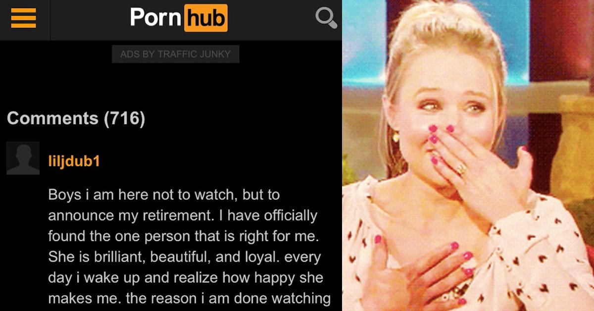 “Boys, I am here not to watch, but to announce my retirement,” the Pornhub fan Liljdub wrote in the comments fo some sex vid.