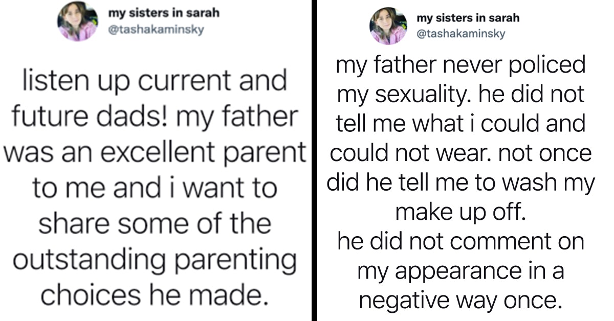 “My father was an excellent parent to me and I want to share some of the outstanding parenting choices he made,” wrote @tashakaminsky.