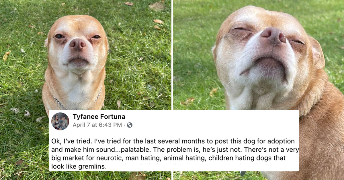 A Facebook post about a seemingly unadaptable dog went viral this week. The ‘demonic’ Chihuahua named Prancer was described as, “haunted Victorian child in the body of a small dog that hates men and children,” man-hating, and neurotic. Luckily, there is love for everyone out there and Prancer found his forever home.