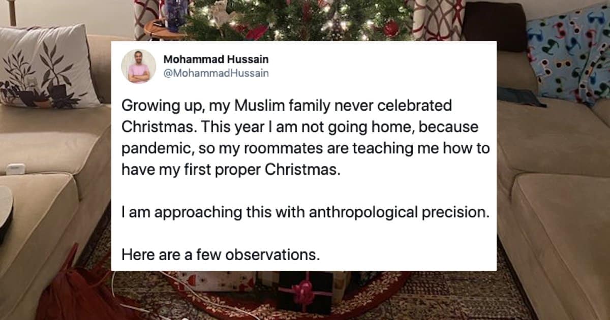 A Canadian man named Mohammad Hussain claims on Twitter that this is essentially his first Christmas. His family is Muslim and obviously don’t celebrate it and he generally goes to see his family over the Christmas break.
