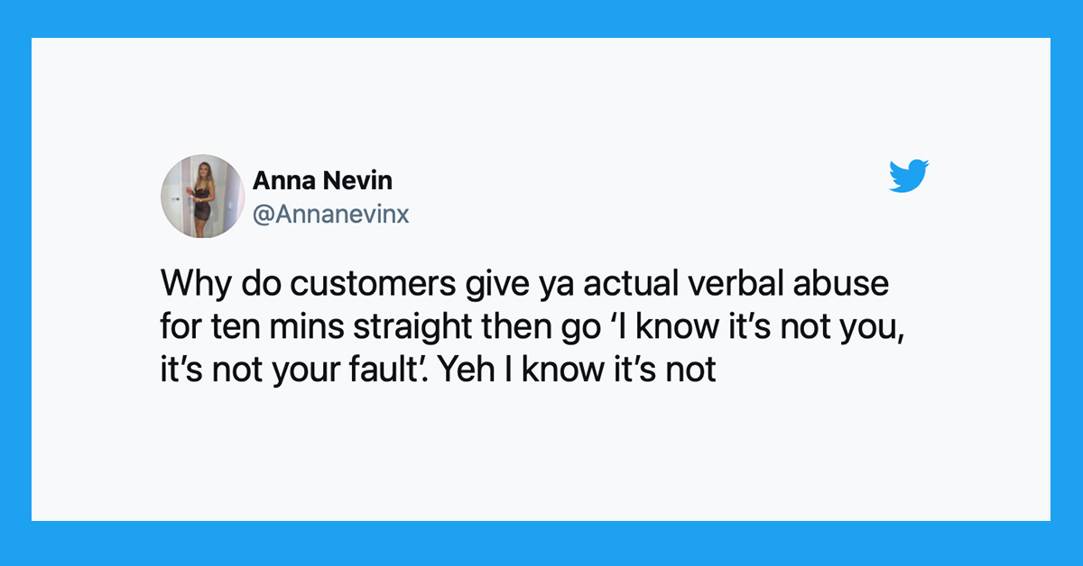 They are treated so badly by customers and aren’t paid very much. It’s about time we start letting them fight one customer a week.