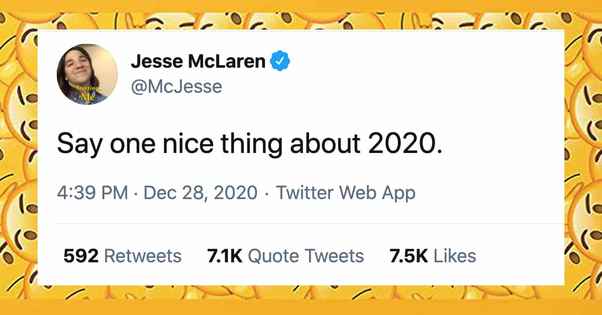 Comedian Jesse McLaren wanted to end this year of hell on as much of a positive note as possible, so he asked people to say something nice about 2020.