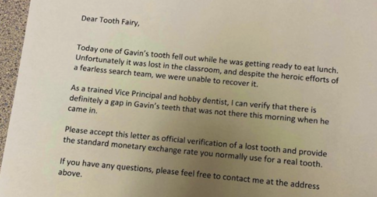 Vice Principal Writes Adorable Letter To The Tooth Fairy When Student Loses Tooth